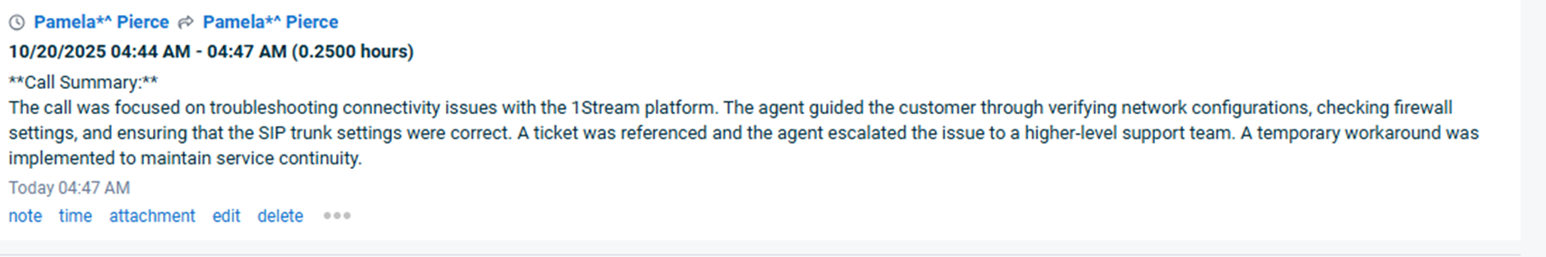Time entries will be the exact start time and end time of the respective call and post the summary of the call transcript