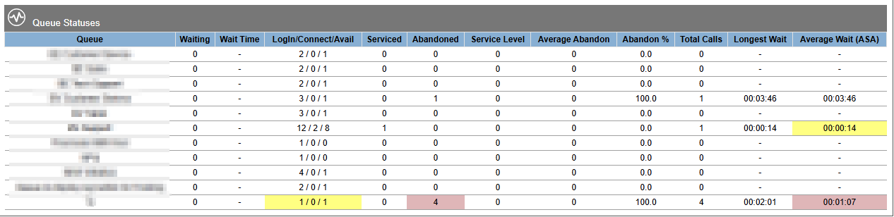 Using our new Threshold Settings, you can define minimum and maximum values for various queue fields, and once those are reached the color can change to bring it to your attention.